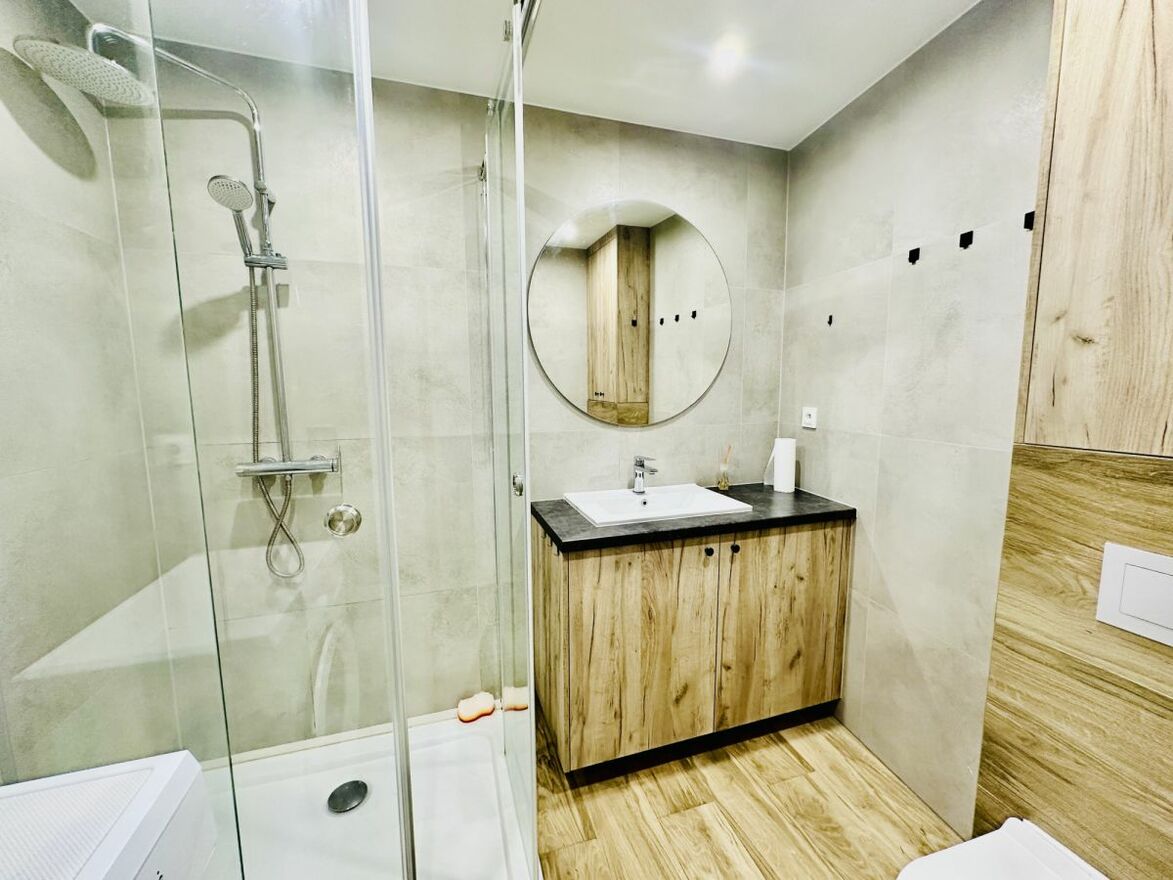 - wygodna łazienka z przeszklonym prysznicem